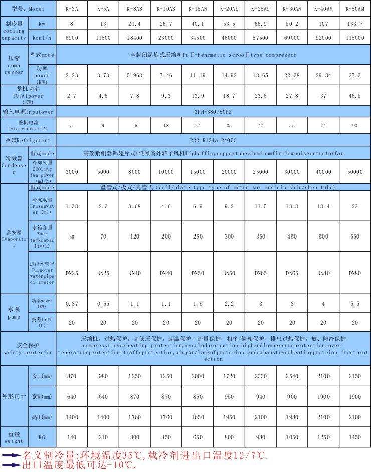 8.水冷及風(fēng)冷式規(guī)格齊全(功率:3HP-300HP,制冷量從600W至34800W)專門設(shè)有適合各行業(yè)機(jī)械設(shè)備配套之機(jī)型,可按客戶要求特別制造。